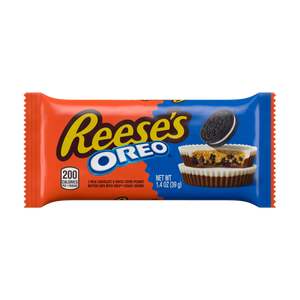 When two legendary treats come together, magic happens! REESE’S has taken their iconic peanut butter cup and elevated it with a dual-layer shell of smooth milk chocolate and creamy white creme, all while stuffing it with crunchy OREO® cookie crumbs. The result? A sweet, creamy, and crunchy delight that delivers a flavor explosion with every bite.